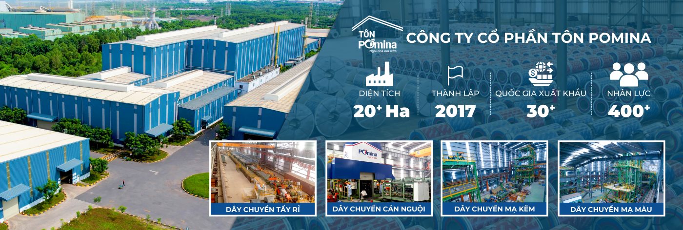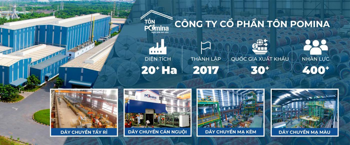 Tôn Pomina được thành lập năm 2017, sở hữu nhà máy 14 ha tại KCN Phú Mỹ I (TP. Hồ Chí Minh). Công ty tập trung phát triển các dòng tôn chất lượng cao, đáp ứng tiêu chuẩn khắt khe của Châu Âu, Mỹ và Nhật Bản. Toàn bộ dây chuyền sản xuất được cung cấp bởi Tenova (Ý), kết hợp nguồn nguyên liệu và sơn phủ từ các đối tác hàng đầu thế giới như Nippon Steel, Posco, Chung Hung, Formosa, AkzoNobel và PPG, tạo nền tảng vững chắc cho chất lượng, uy tín và năng lực cạnh tranh của Tôn Pomina trên thị trường trong nước và quốc tế.