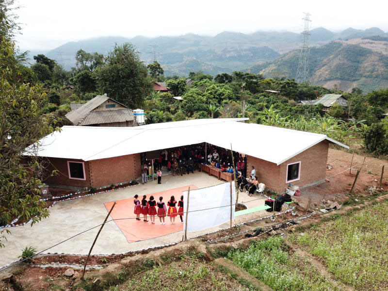 Đầu năm 2022, Điểm trường Mầm Non Tà Làng Cao (xã Tú Nang, huyện Yên Châu, tỉnh Sơn La) được khánh thành trong niềm vui hân hoan của thầy cô, các em học sinh và bà con dân bản. Từ trên cao nhìn xuống, ngôi trường hiện lên như một chiếc chong chóng quay giữa núi rừng. Chúng tôi hi vọng món quà ý nghĩa trong dịp đầu năm 2022 sẽ tiếp sức cho các em tiếp tục dưỡng nuôi ước mơ, chắp cánh tương lai bay cao bay xa hơn…