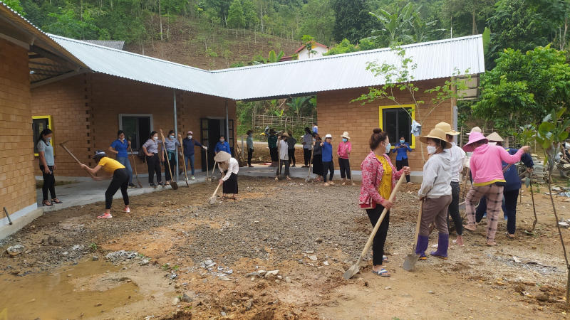 Thầy cô và người dân trong vùng bản tham gia công tác trồng cây trong khuôn viên sân trường